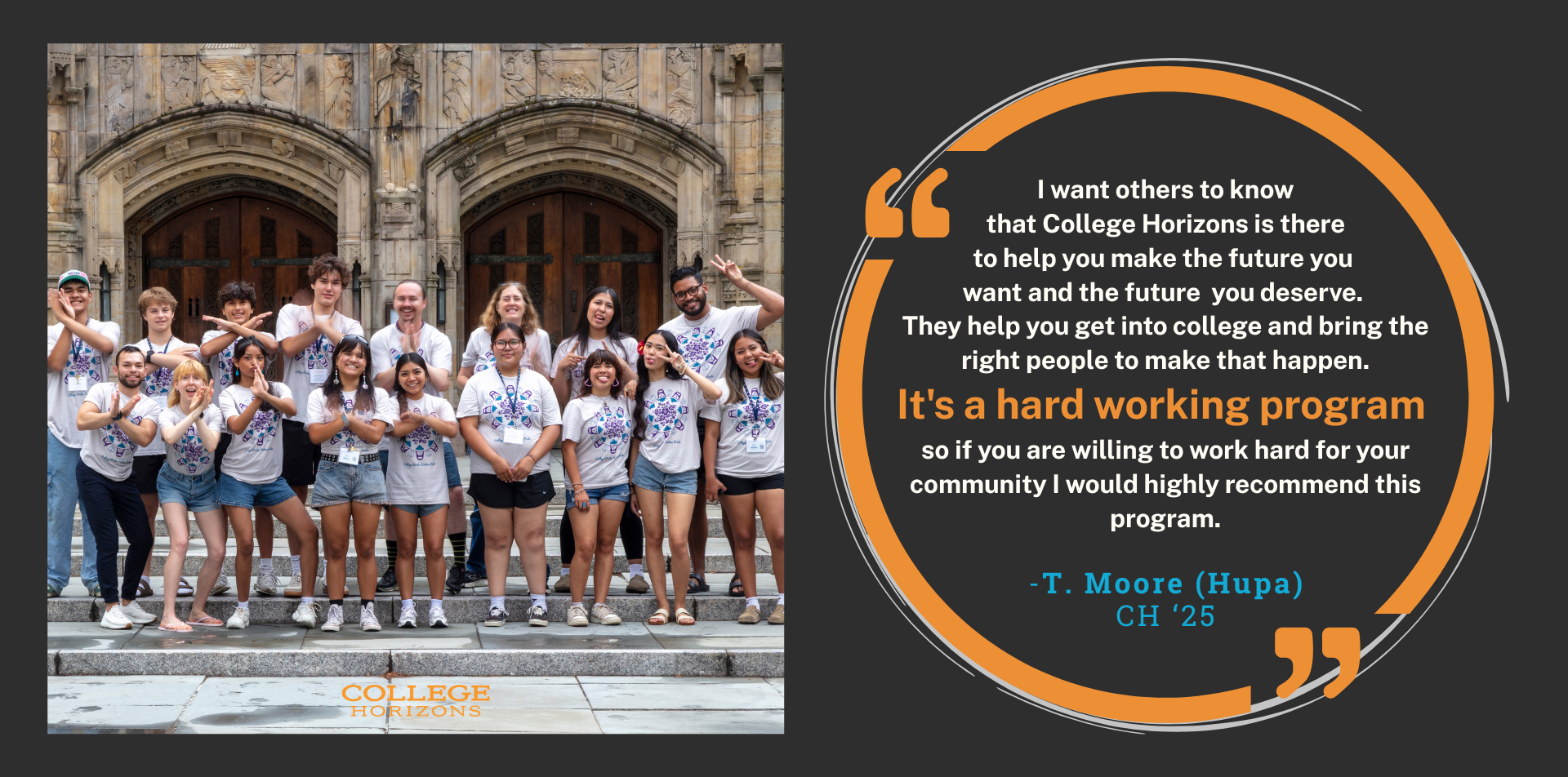 College Horizons is a game changer. It is the best experience and the faculty are one of a kind. They give you the college day-like feel and really walk you through everything. CH faculty really inspired and motivated me to want to go to college more.