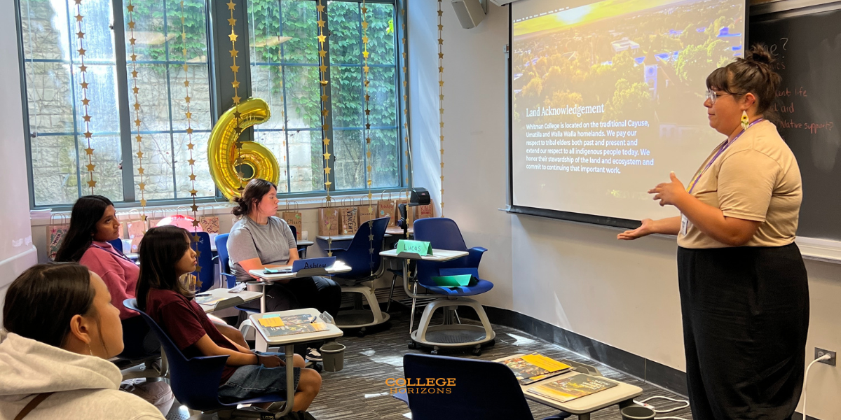 College Horizons gathers the large group to recap the day and share important announcements. Alumni interns will share a brief presentation about their college journey as a College Horizon alum.